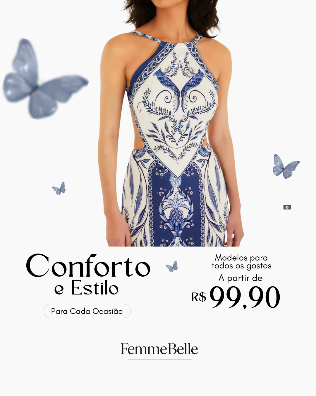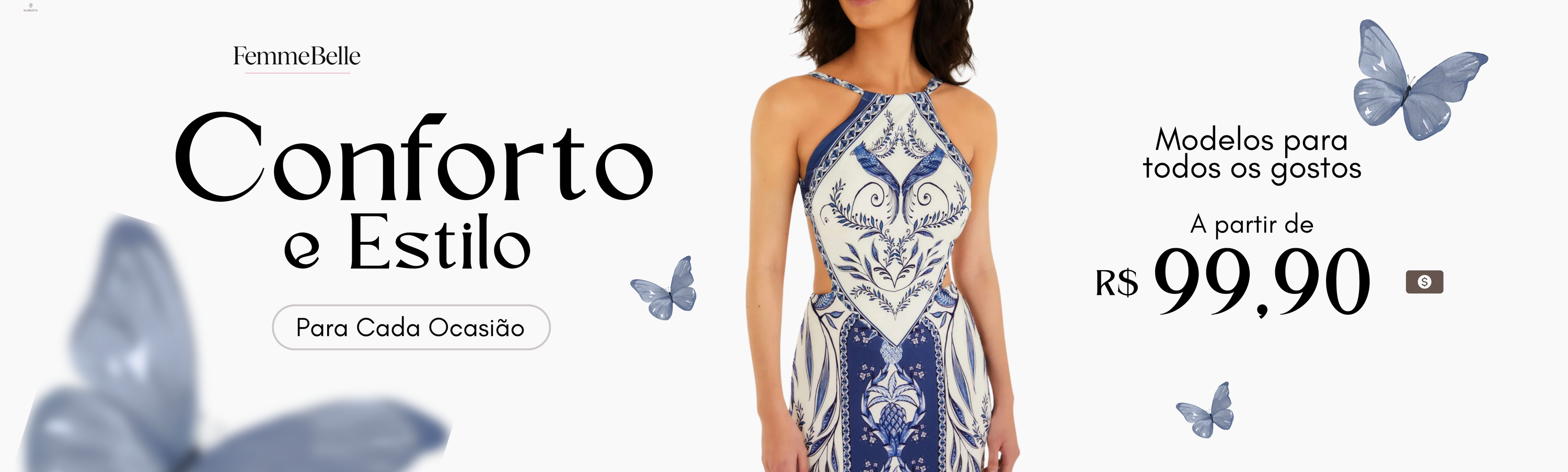 Na FemmeBelle, cada detalhe importa: criamos peças que unem estilo, conforto e sofisticação para realçar sua beleza com leveza. Tecidos suaves, cortes impecáveis e um toque de exclusividade em tudo que você veste.
